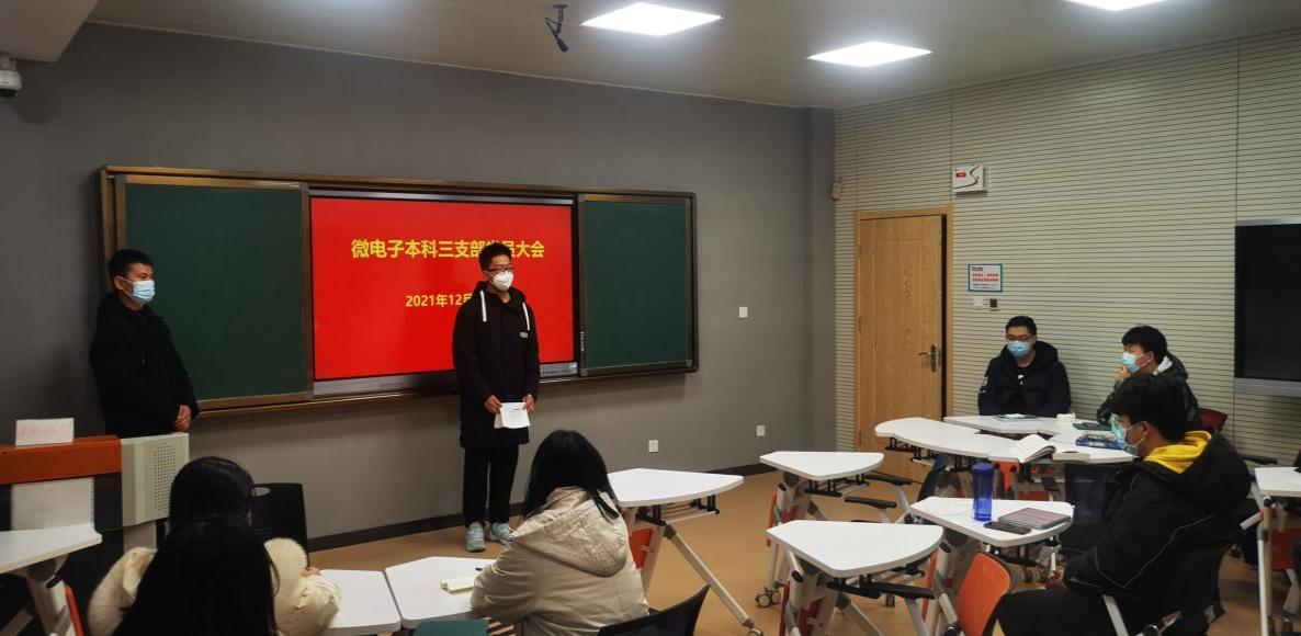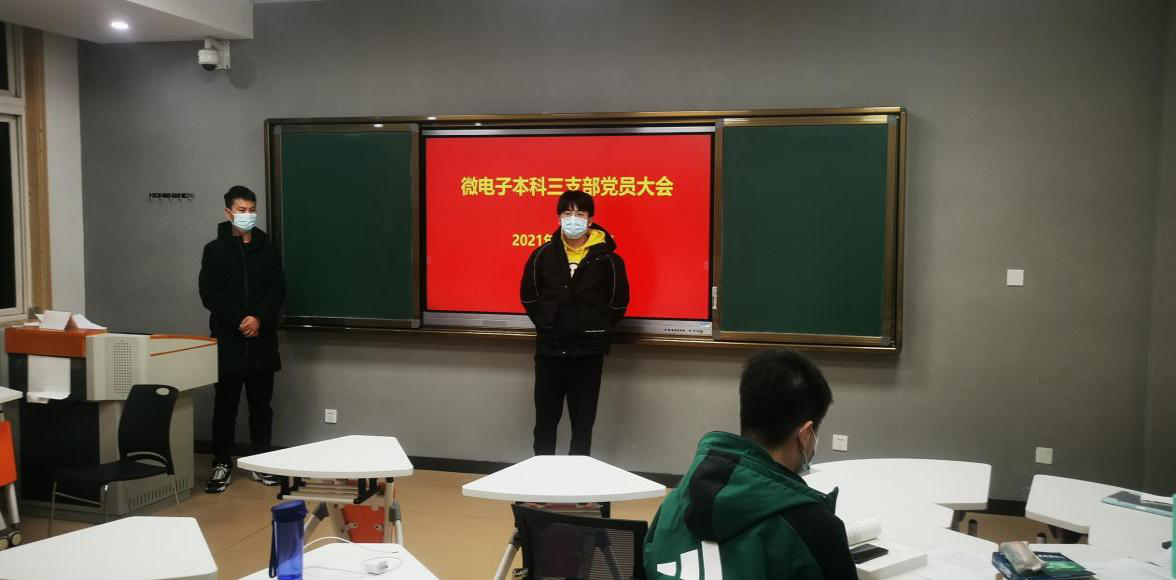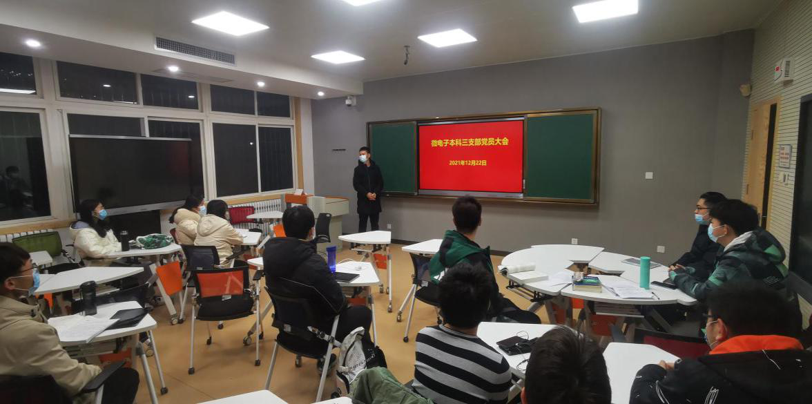 为了加强学院基层党组织建设,落实党支部发展党员工作计划,培养优秀学生党员,微电子学院本科三支部于2021年12月22日晚,在长安校区教学东楼JB107召开接收预备党员与预备党员转正大会,支部全体党员、预备党员与发展对象参加,会议由支部书记黄佛保老师主持。