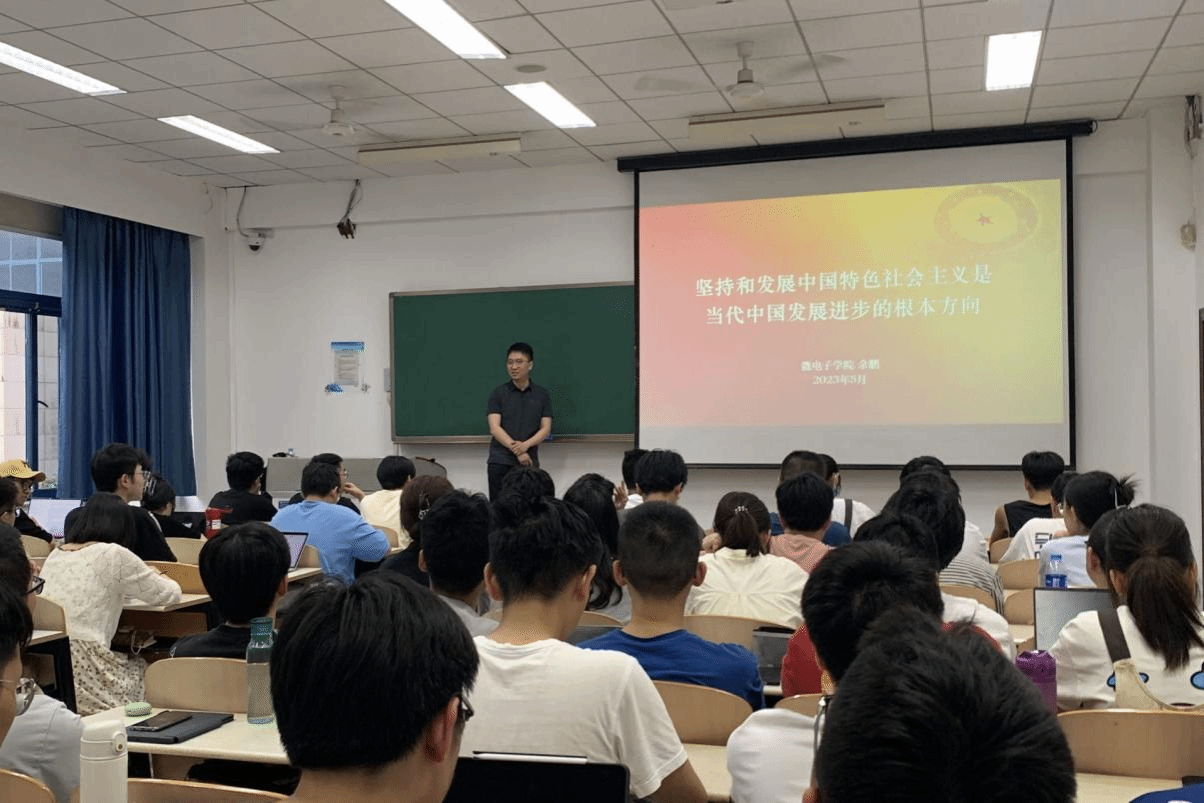 为深入学习贯彻党的二十大精神和习近平新时代中国特色社会主义思想,5月17日,微电子学院党委副书记余鹏为学院发展对象、积极分子、新转正党员讲授“坚持和发展中国特色社会主义是当代中国发展进步的根本方向”主题党课。