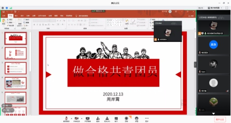 会上,周岸霄带领同学们学习了中国共青团的历史。中国共青团从1919年到1949年诞生,发展于1949年到1978年,并且从1978年至今,在中国共产党领导的改革开放和社会主义现代化建设新时期一步步发展壮大。通过对“一二•九”运动等重要历史事件的回顾,同学们从中感受到了先辈们的爱国热情和满腔热血。