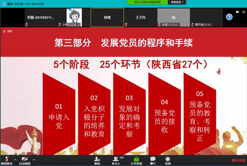 党委组织部林鹰老师进行在线授课。本次培训课由电子信息类辅导员王大伟老师主持,辅导员汪钰成和电子信息类全体学生入党积极分子参加了本次培训。
