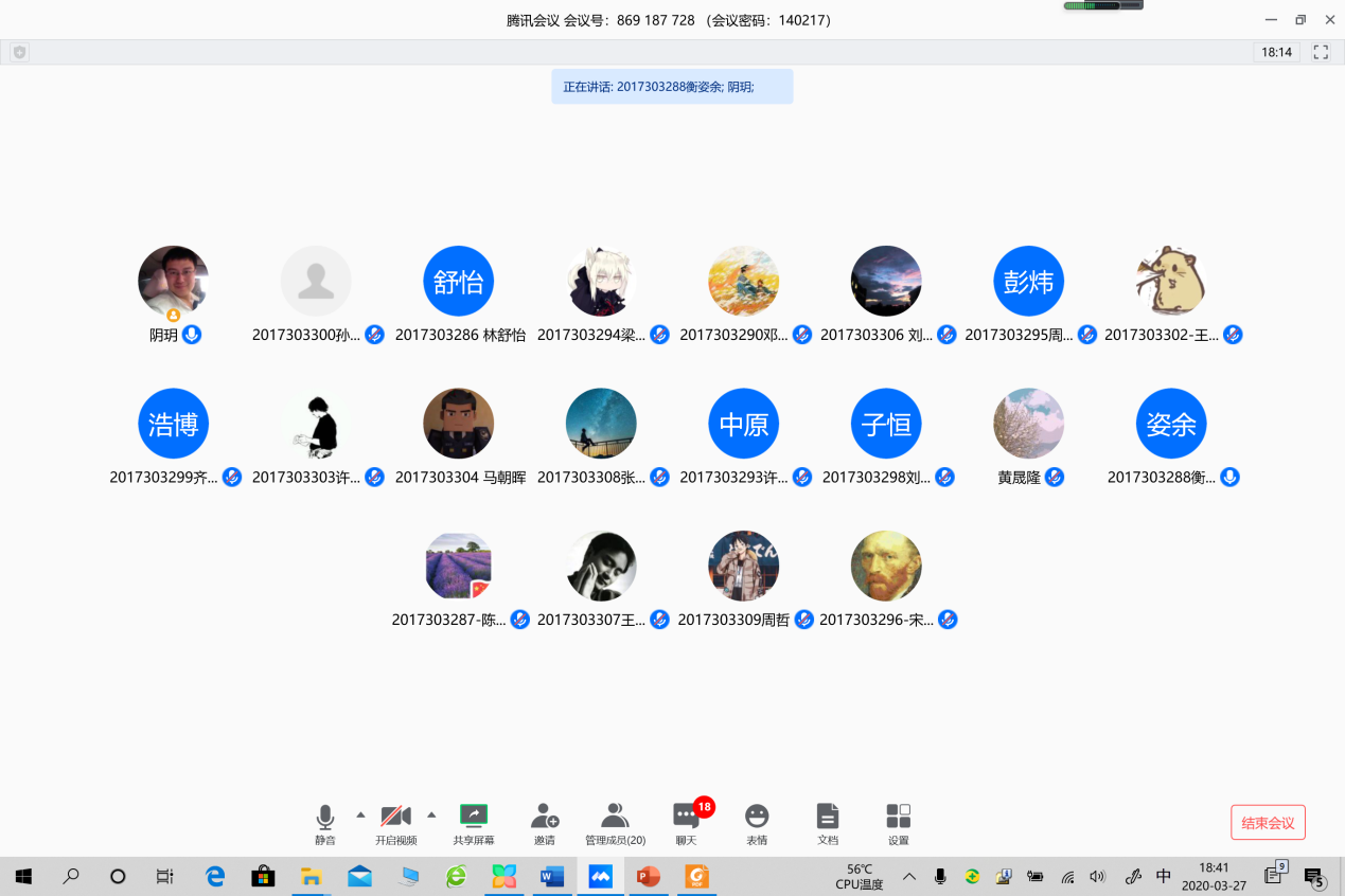14021704班的主题班会上,班主任阴玥老师与同学们在线上进行了亲切交流,大家就如何缓解在家上网课的疲劳心态和如何正确面对保研、考研选择这两个主题展开了深入讨论。首先,同学们对如何缓解长时间在线学习的疲劳心态交流了各自的方法;接着,玥老师对微电子专业保研方式与名额比例、考研学校及往年国家线校线等情况向同学们作了详细介绍,解答了同学们关于保研政策、考研方向等热点问题的疑惑,使大家对未来学业规划和个人定位有了更清晰的认识。最后,班会在欢快愉悦的气氛中圆满结束。