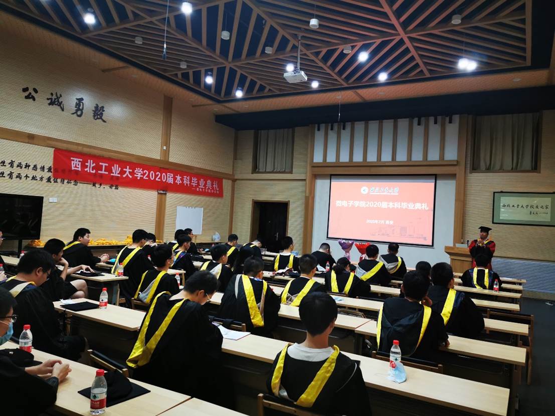 微电子学院2020届本科毕业典礼暨学位授予仪式在友谊校区阶二会议厅举行,祝贺全体微电子本科毕业生圆满完成学业任务,获得学士学位。学院副院长王少熙,党委副书记彭蓉,教师代表马彦昭、毕业班辅导员阴玥和全体本科毕业生参加毕业典礼,辅导员阴玥主持仪式现场。