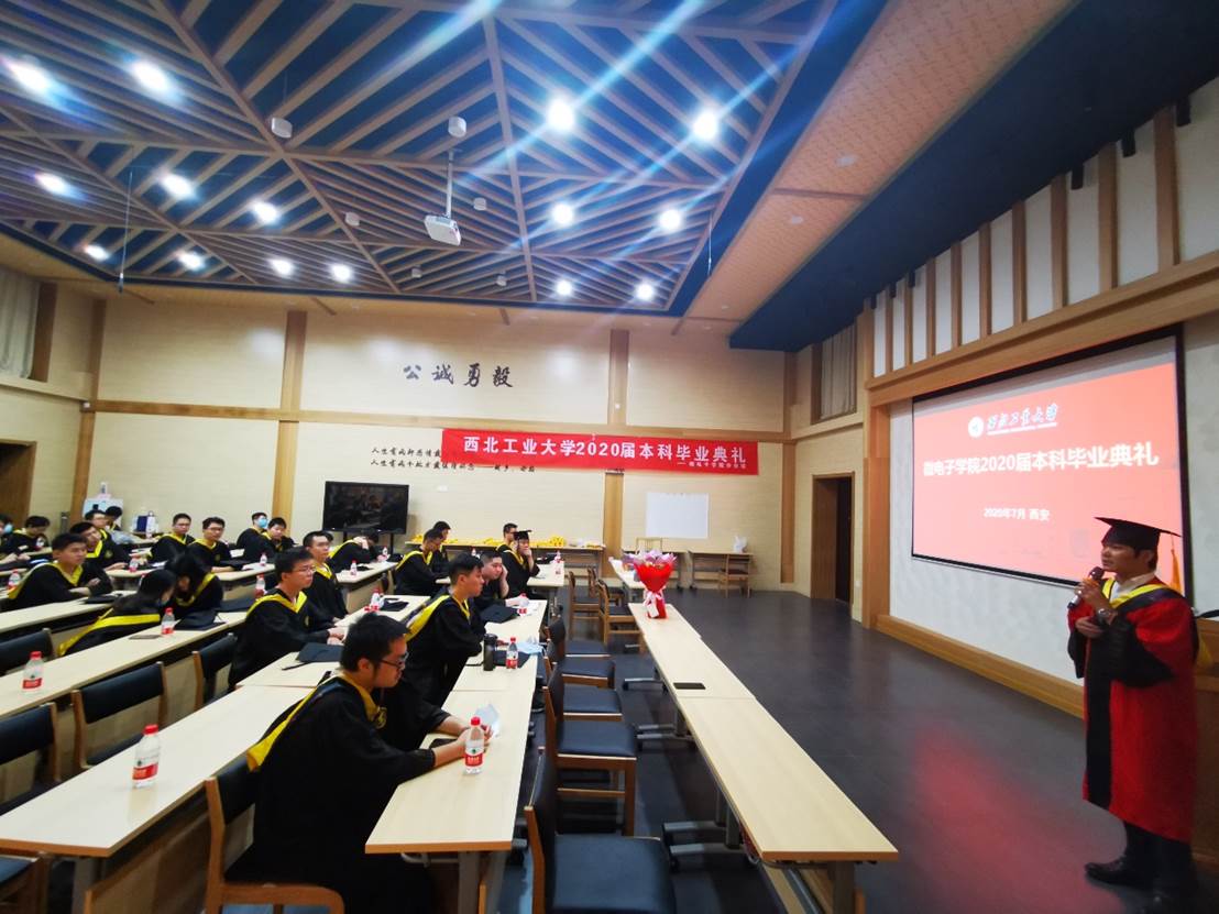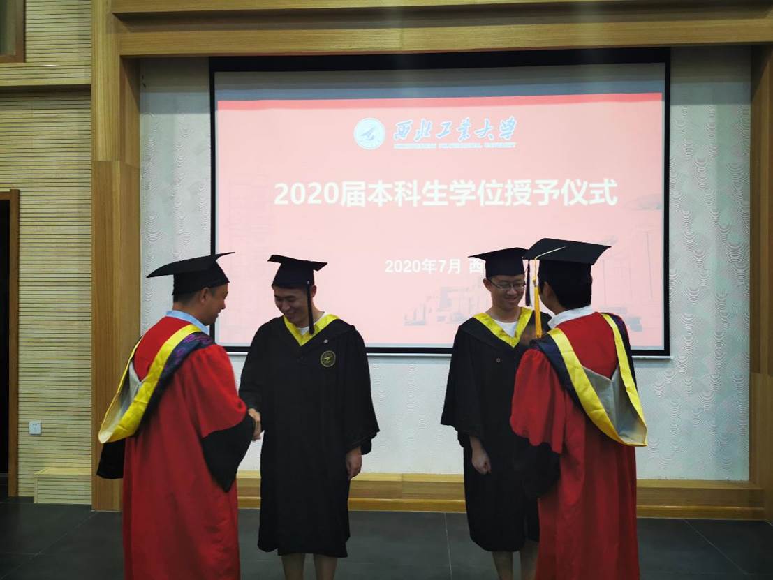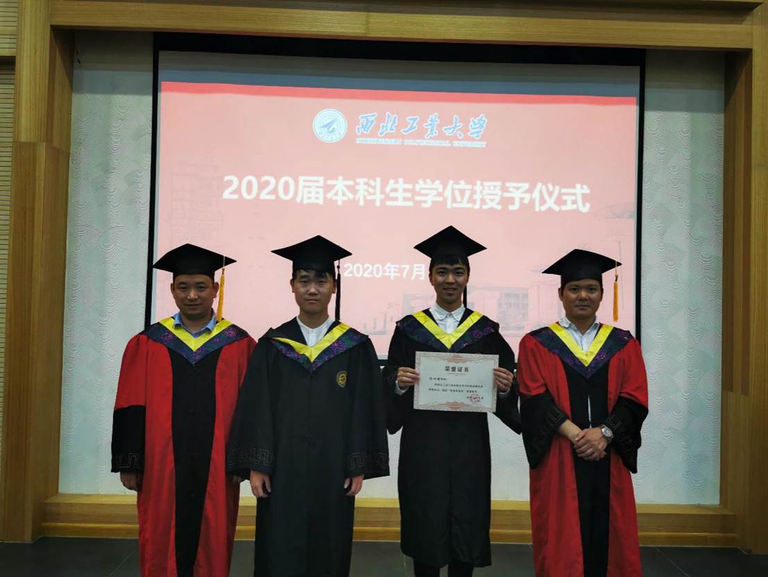 留学生代表Safonova Nadezda(晨曦),学院优秀毕业生代表周翔等的发言道出了全体毕业生对母校的感恩之情。教师代表齐乐华教授深情寄语,希望同学们不忘初心,做有理想的青年。毕业生代表为教师代表、辅导员代表、班主任代表、保卫处代表、校医院代表、餐厅代表、学生公寓管理员代表、校车驾驶员代表等献上鲜花。家长代表丁雪丽女士是陕西省重点收治新冠肺炎病例医院的护士长,全场以最热烈的掌声表达了对所有抗击一线的英雄们的致敬。校友代表李鹏的致辞亲切质朴,满怀学长的殷勤之情。校长汪劲松以《理想客观认识世界》为题,表示了对全体毕业生的殷切期望,并宣布授予学位。最后在卡通a片