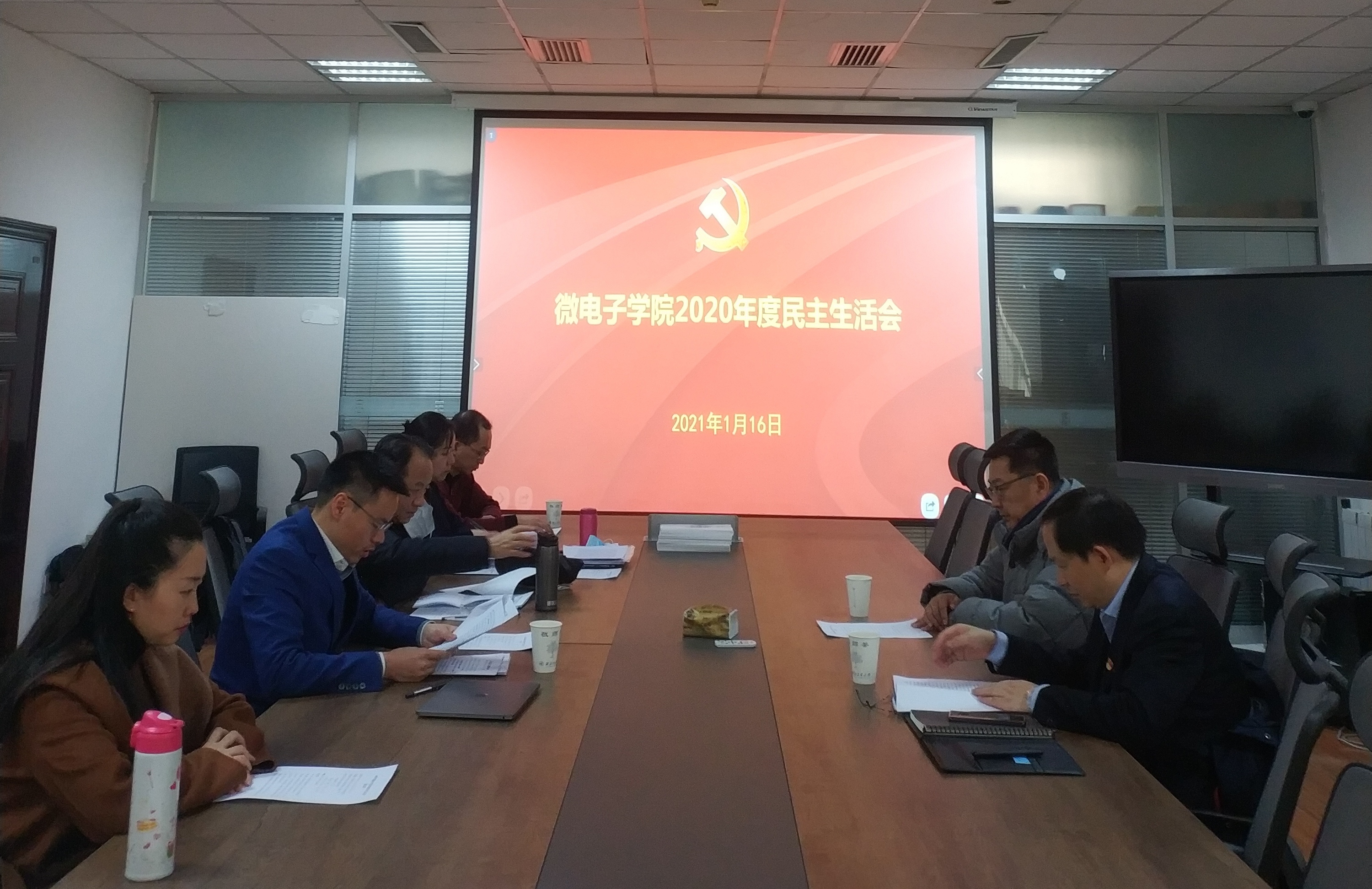 按照学校党委《关于开好2020年度二级单位领导班子民主生活会的通知》要求,2021年1月16日下午,微电子学院在友谊校区招办会议室召开2020年度领导班子民主生活会。学校党委常委、副校长杨益新,学校纪委委员、校医院党总支书记乔辉出席会议,微电子学院院长周德云、党委副书记(主持工作)甘雪涛、党委副书记彭蓉参加会议,王少熙副院长因赴太仓调研请假,教工党支部书记刘炜、院长助理关赫和办公室秘书景省利列席会议。会议由甘雪涛主持。