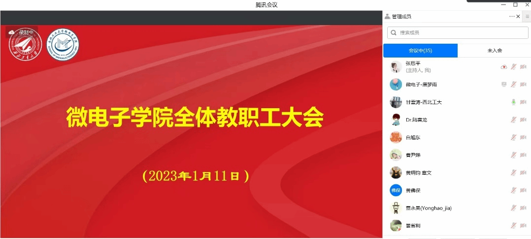 1月11、13日,微电子学院分别组织召开全体教职工大会,大会对师德师风、年终绩效分配、岗位聘任聘期考核、党风廉政、寒假安全稳定等方面进行通报和部署,会议由学院党委书记甘雪涛主持。
