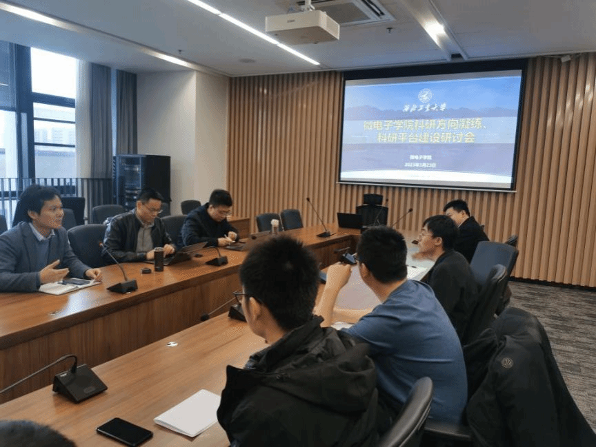 3月23日,微电子学院在太仓智汇港召开科研工作研讨会。学院领导班子和智汇港全体教师参加会议,会议由学院副院长王少熙主持。