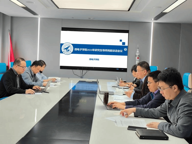 研究生导师岗前谈话工作办法》文件要求,微电子学院于10月16日上午召开了2023年度新认定研究生导师岗前谈话工作会议。院长马炳和、党委书记甘雪涛、党委副书记余鹏、院长助理关赫以及新认定的7位导师参加了会议,会议由院长马炳和主持。