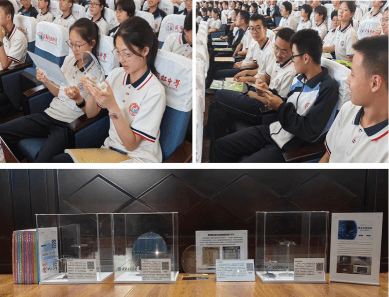 咸阳彩虹中学成立于1980年,是陕西省普通高中示范学校,在此次招生宣传活动中,微电子学院为咸阳彩虹中学授予优秀生源基地,探讨共建兴趣课程,赠送科普书籍、教具、集成电路制备虚拟仿真实验软件,开展科普讲座。
