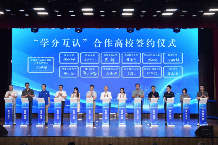 本次实习实践活动由我院教师徐文涛带队,与无锡高新区产业人才实训学院完成“学分互认”签约仪式,将专业培养课程体系中的实习环节和产业人才实训学院的培训内容相互贯通,共同参加签约仪式的还有复旦大学、南京大学、西安交通大学、北京理工大学、电子科技大学、西安电子科技大学等12所高校。