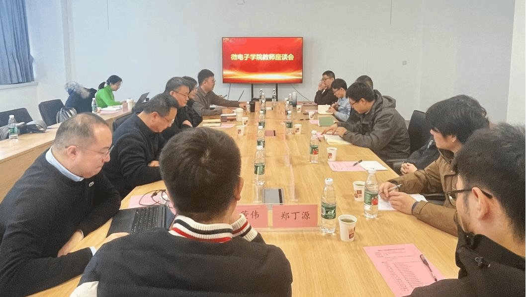 1月13日下午,微电子学院在太仓智汇港召开教师新年座谈会,学院院长马炳和、党委书记杨妮花、党委副书记余鹏、副院长阴玥及常驻太仓智汇港教师参加此次会议,太仓智汇港教学运行管理中心、学生事务中心主任王海涛出席会议。会议由余鹏主持。