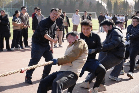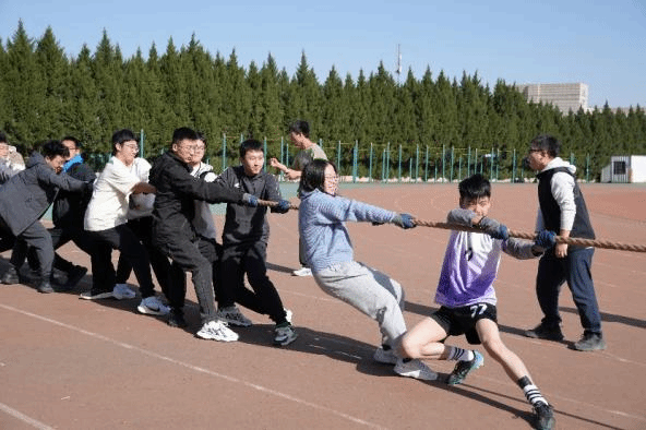 拔河比赛在星天苑田径场举办,各年级踊跃报名、有序参加,共组成八支队伍进行角逐。