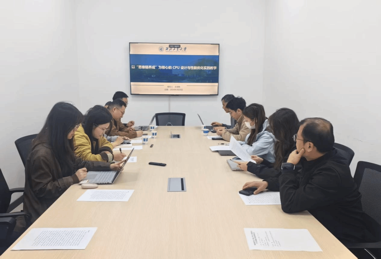 会议特邀计算机学院王党辉副教授作题为《以“思维链养成”为核心的CPU设计与性能优化实践教学》的专题报告。报告中,王老师结合自身多年CPU设计教学与实践经验,深入阐述了“思维链养成”在计算机组成与系统结构课程中的实践路径。针对传统教学中学生重工具轻原理、回避复杂问题等痛点,他提出教学重构思路,推动教师从知识讲授者向思维引导者转变。围绕课程思政元素挖掘与融入,王老师结合专业教学实际,从科学方法论、国产芯片发展、工匠精神与团队协作等维度,系统讲解思政元素融入路径,通过绪论章节集中引领、课堂教学随机渗透等方式,将家国情怀、工程伦理、创新精神自然融入专业教学全过程。