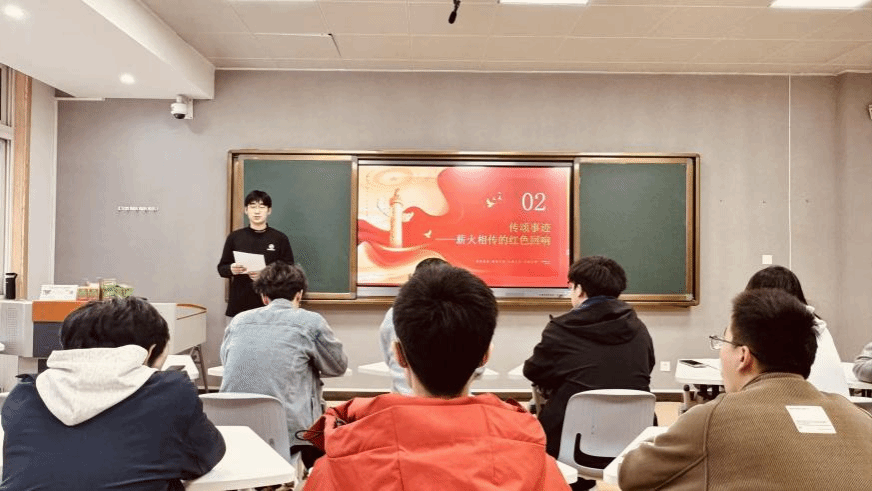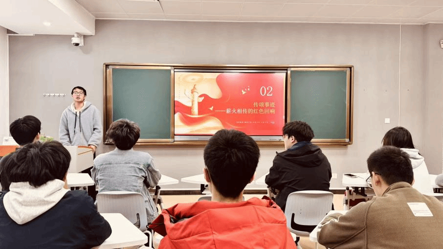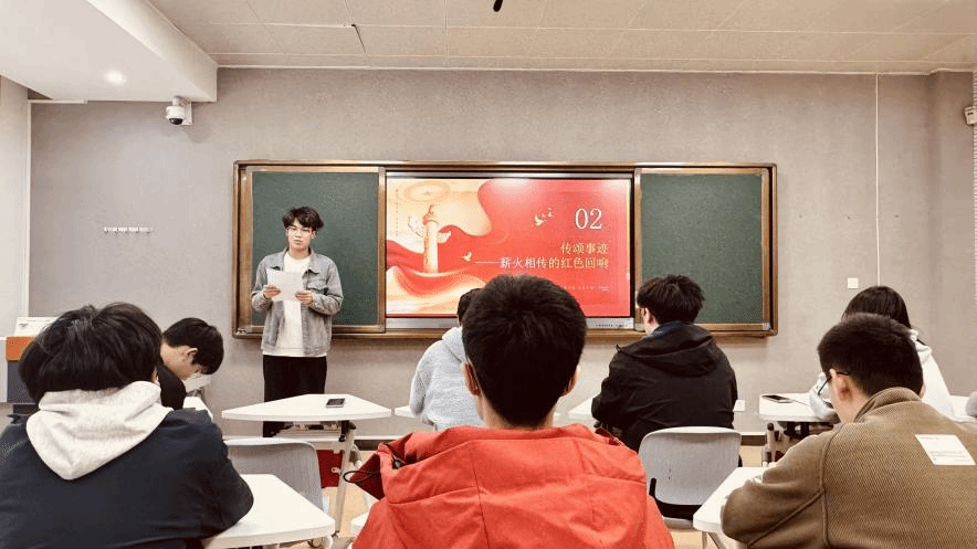 随后进入“传颂事迹——薪火相传的红色回响”环节,由陈昱廷、董审言、苏春昊、郑子祥和黄馨月5位同学依次分享家乡的红色事迹。